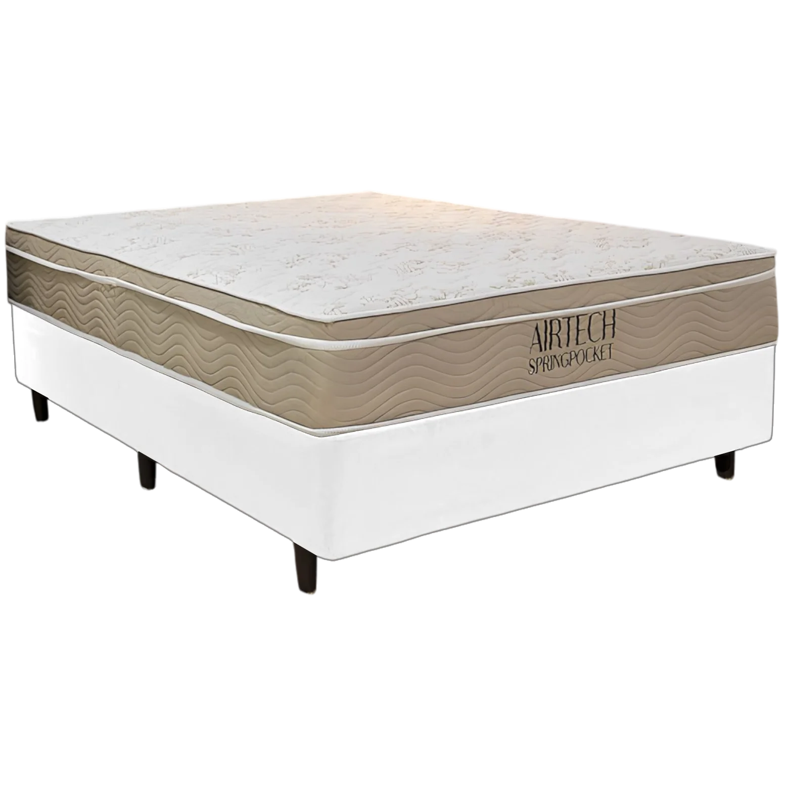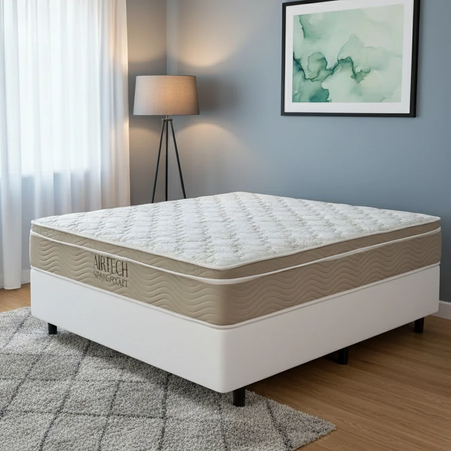 Colchão Casal Airtech Springpocket + Base Box Simples Corino Branco – ORTOBOM + ALTO NÍVEL CAMAS E COLCHÕES