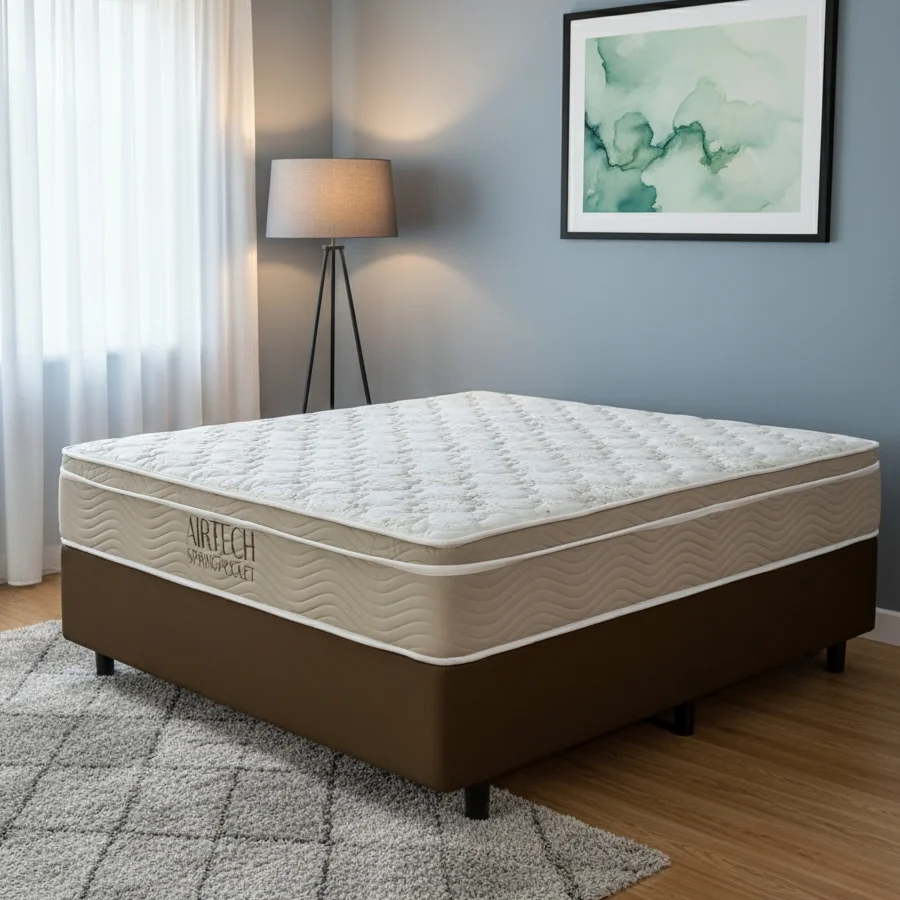 Colchão Casal Airtech Springpocket + Base Box Simples Corino Marrom – ORTOBOM + ALTO NÍVEL CAMAS E COLCHÕES