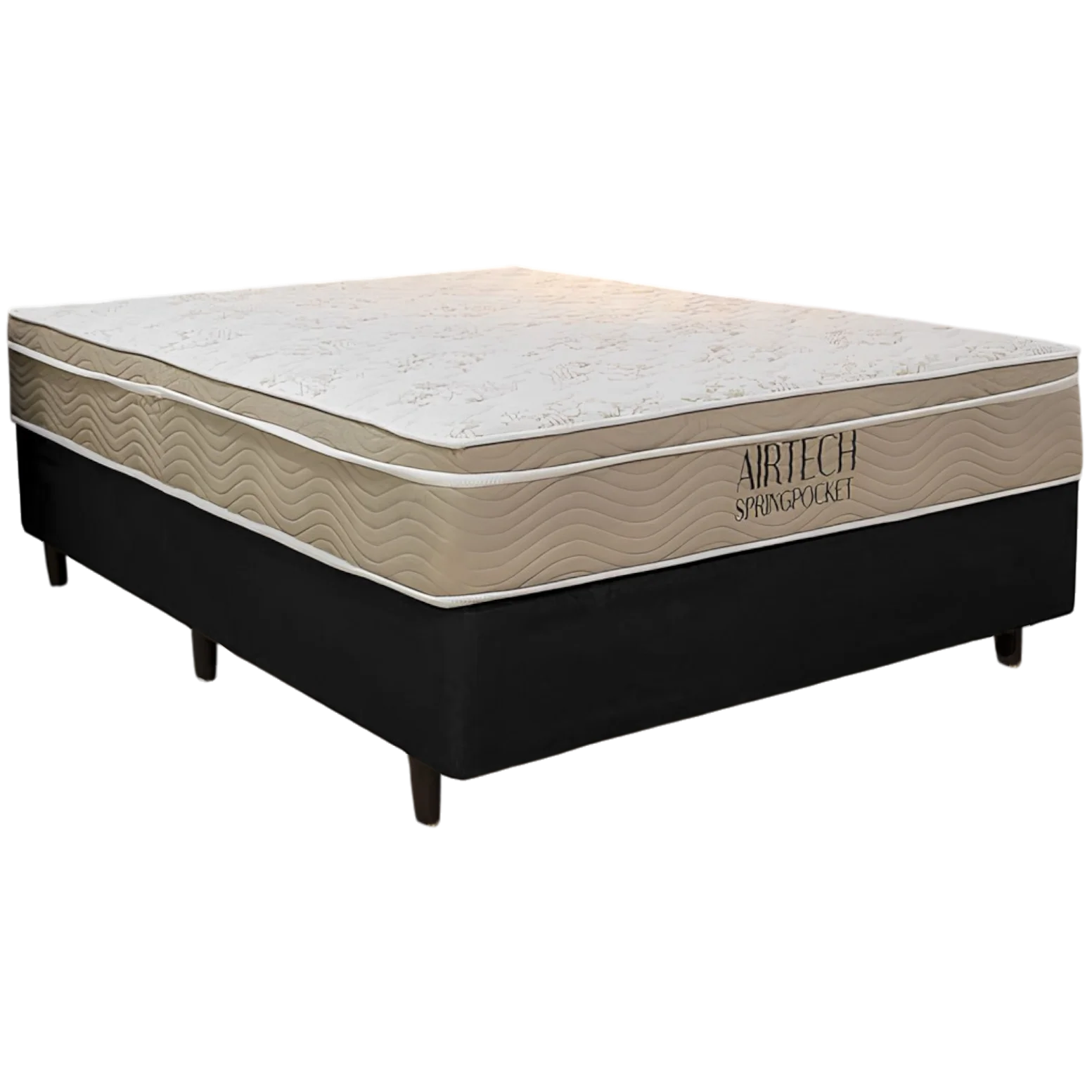 Colchão Casal Airtech Springpocket + Base Box Simples Corino Preto – ORTOBOM + BIOSTAR
