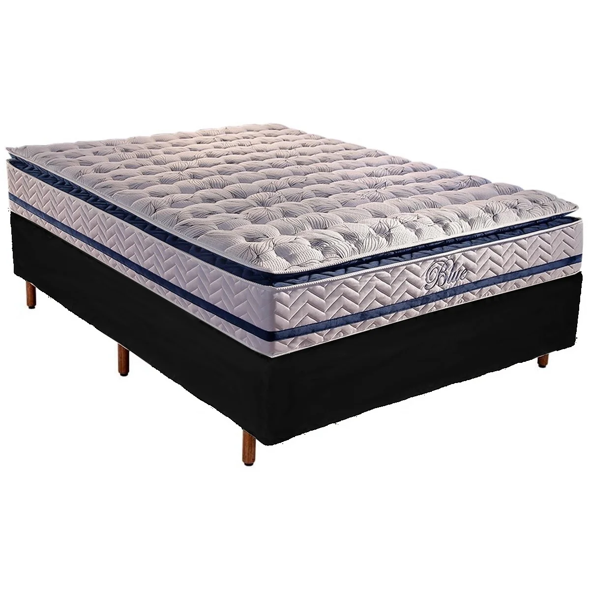 Colchão Casal Blue D33 + Base Box Simples Corino Preto – PAROPAS + ALTO NÍVEL CAMAS E COLCHÕES