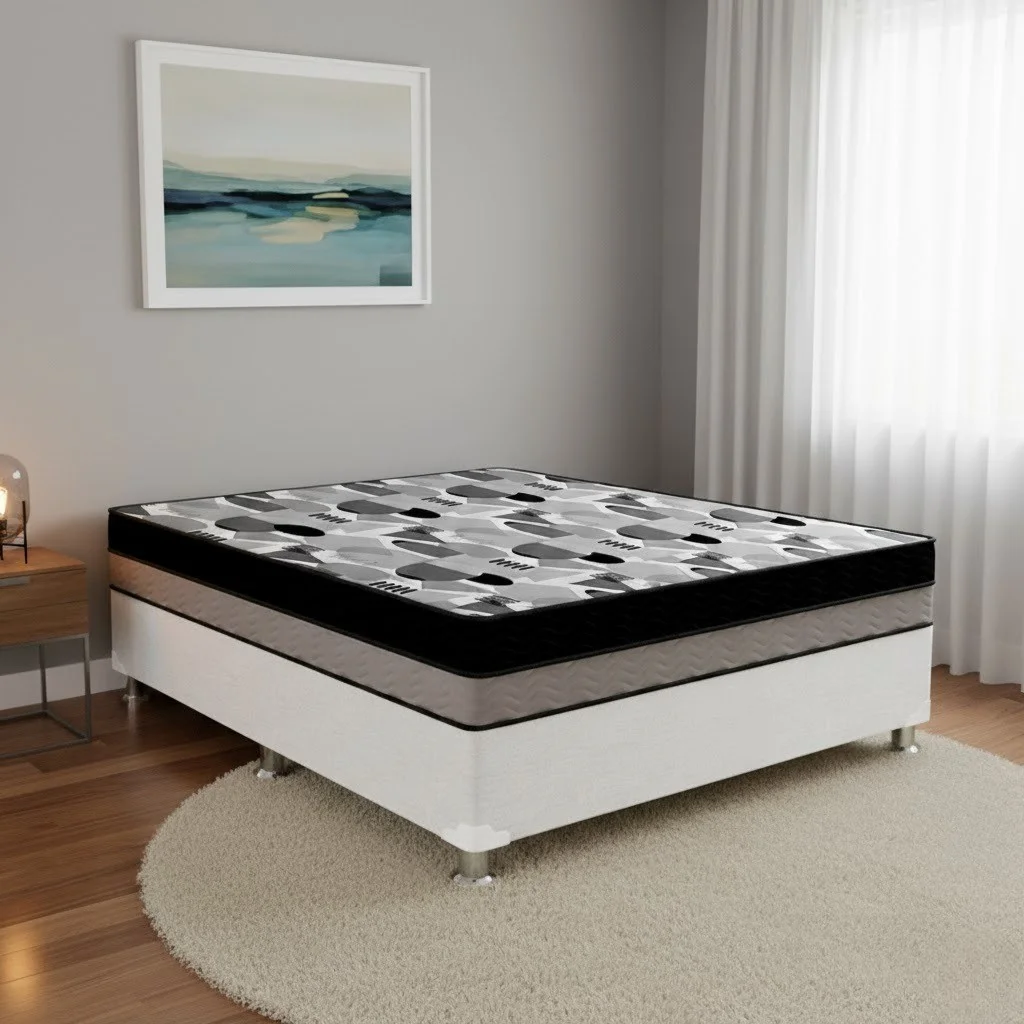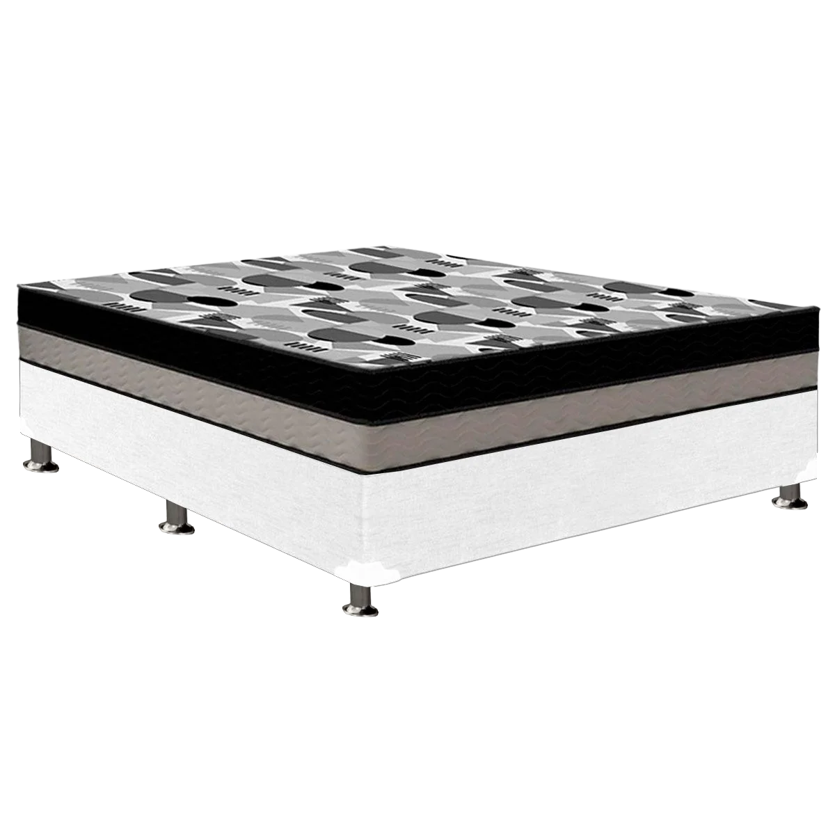 Colchão Casal ISO Dupla Face + Base Box Simples Corino Branco – ORTOBOM + ALTO NÍVEL CAMAS E COLCHÕES