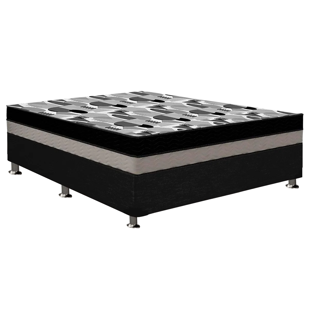 Colchão Casal ISO Dupla Face + Base Box Simples Corino Preto – ORTOBOM + BIOSTAR