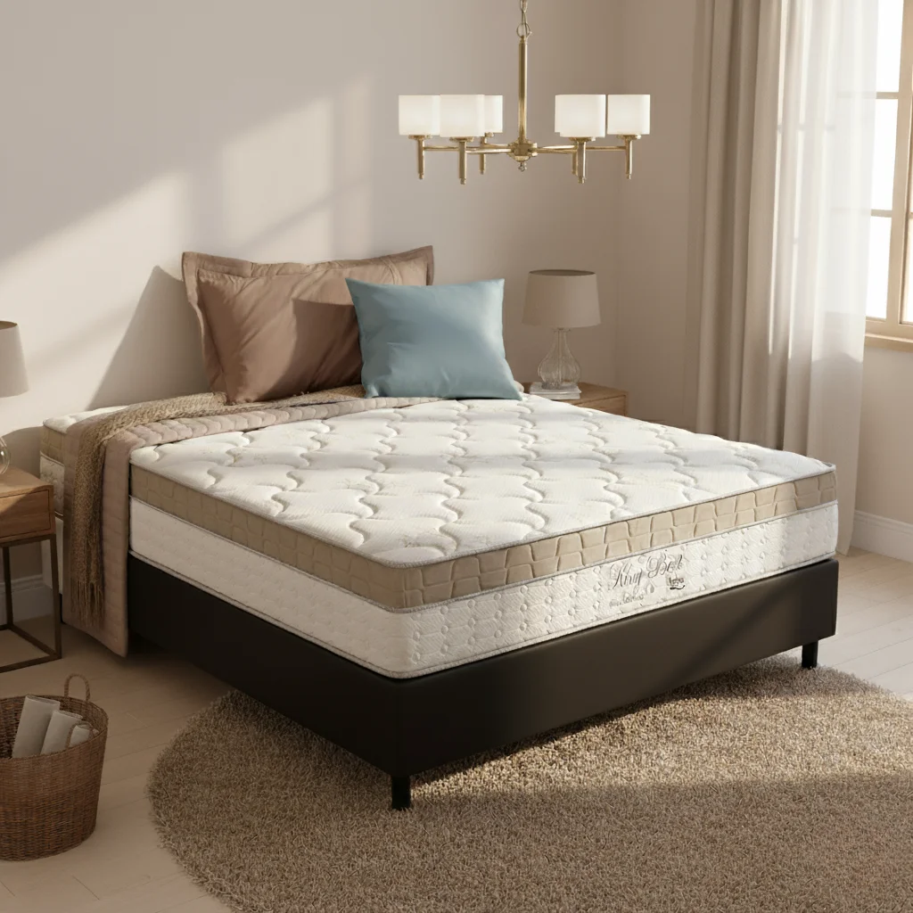 Colchão Casal King Best D28 + Base Box Simples Corino Preto – ANJOS COLCHÕES + ALTO NÍVEL CAMAS E COLCHÕES
