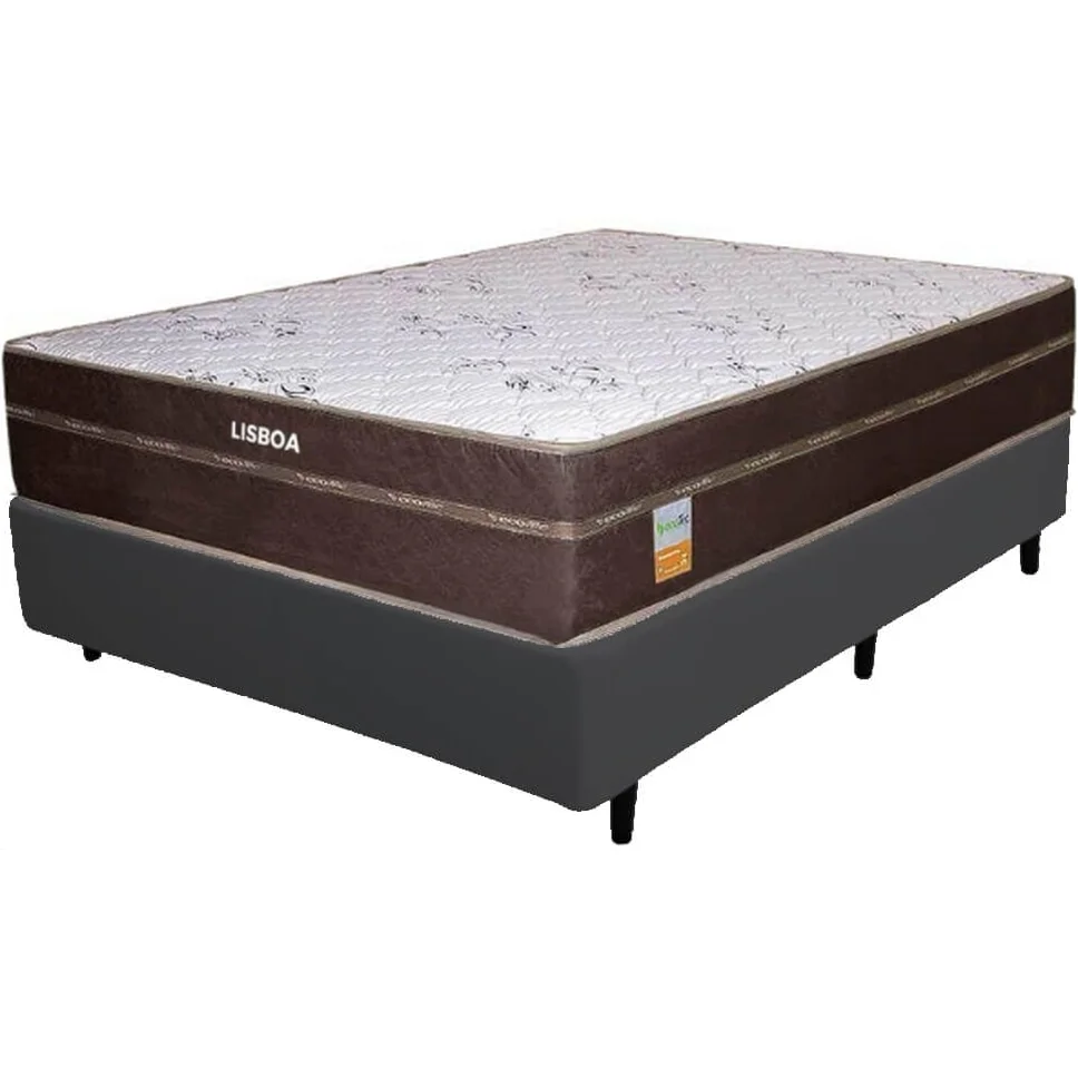 Colchão Casal Lisboa D28 + Base Box Simples Corino Preto – ECOTEC + ALTO NÍVEL CAMAS E COLCHÕES