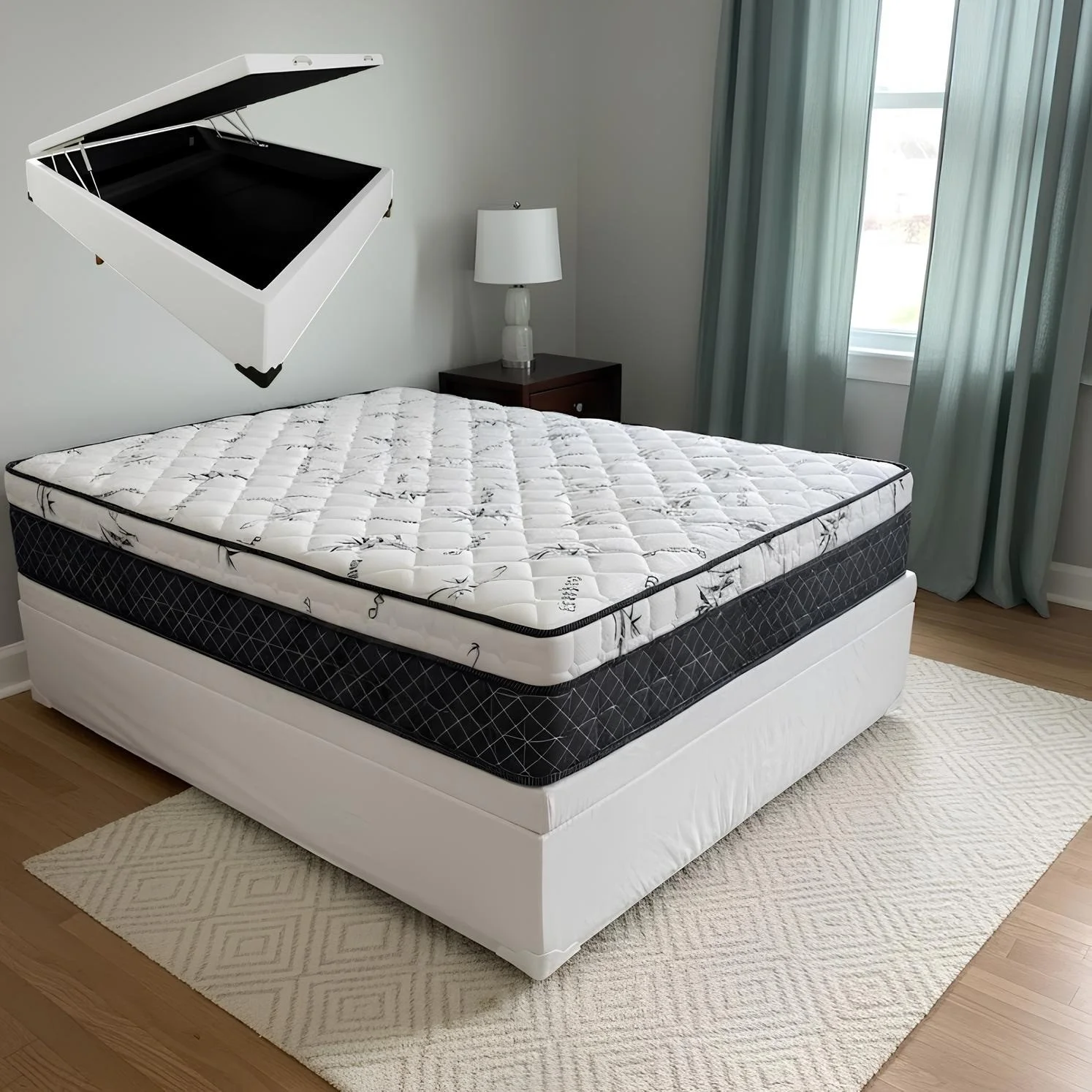 Colchão Casal Prime Light 26 cm D28 + Base Box Baú Corino Branco – ORTHOPRIME + BIOSTAR