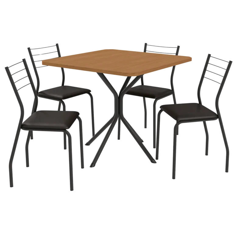 Mesa Creta 0,90 com 4 Cadeiras Malta CMC1078 (M088/F090/4C140) Cromado/Canela – KAPPESBERG