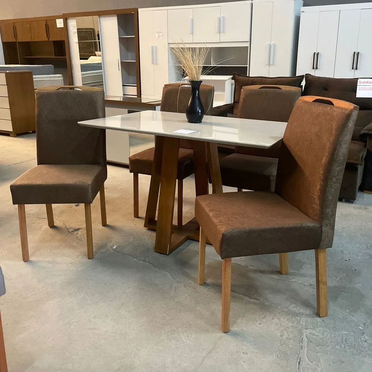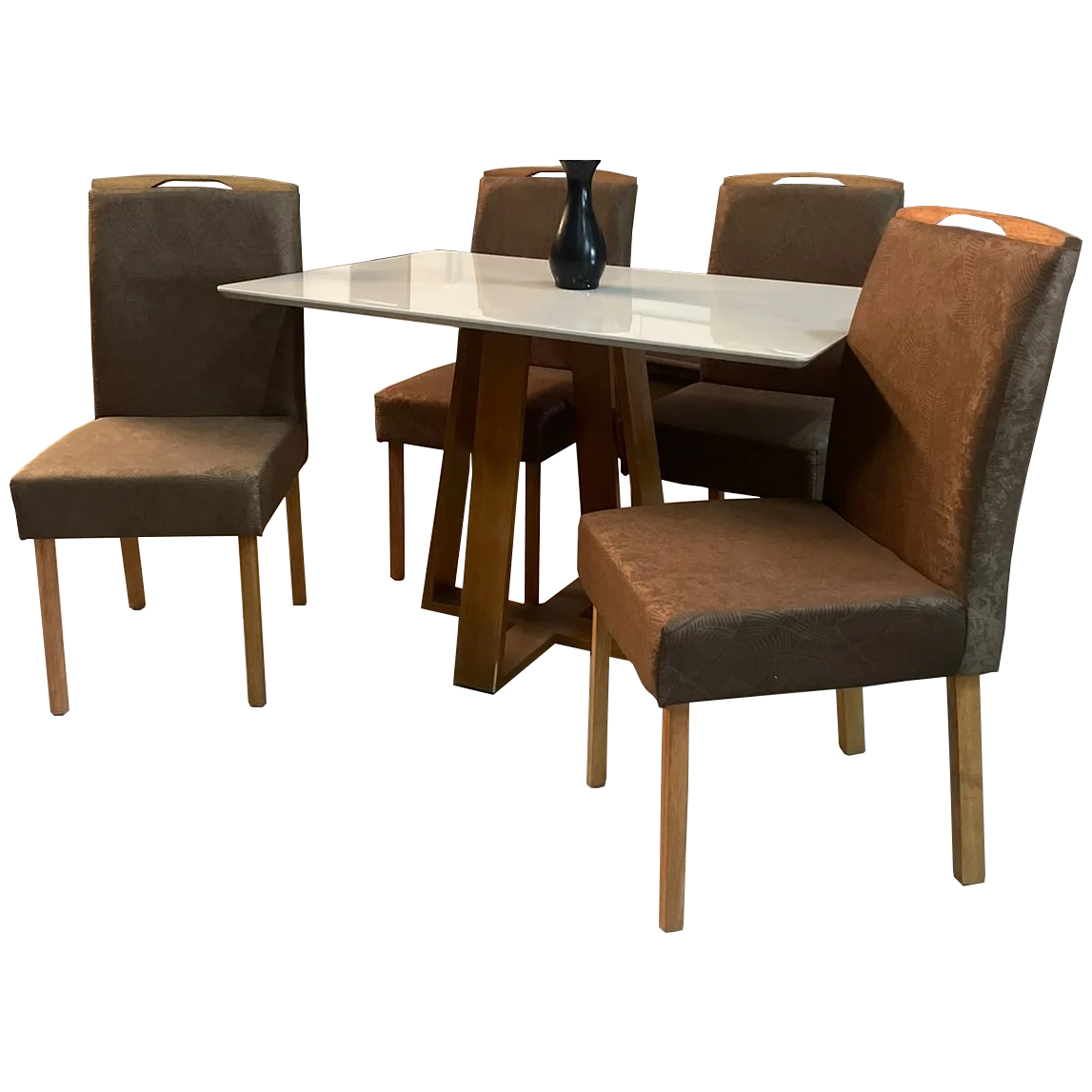 Mesa Pedro 120 Mel/Off White com 4 Cadeiras Priscila Imbuia Mel Veludo Marrom 1014 – ART ASSENTOS + AVALON DECOR