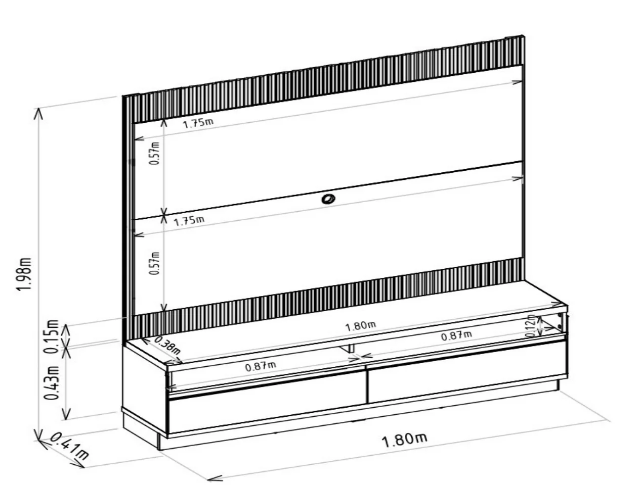 – Espaço para TV: 114 cm x 175 cm (AxL)