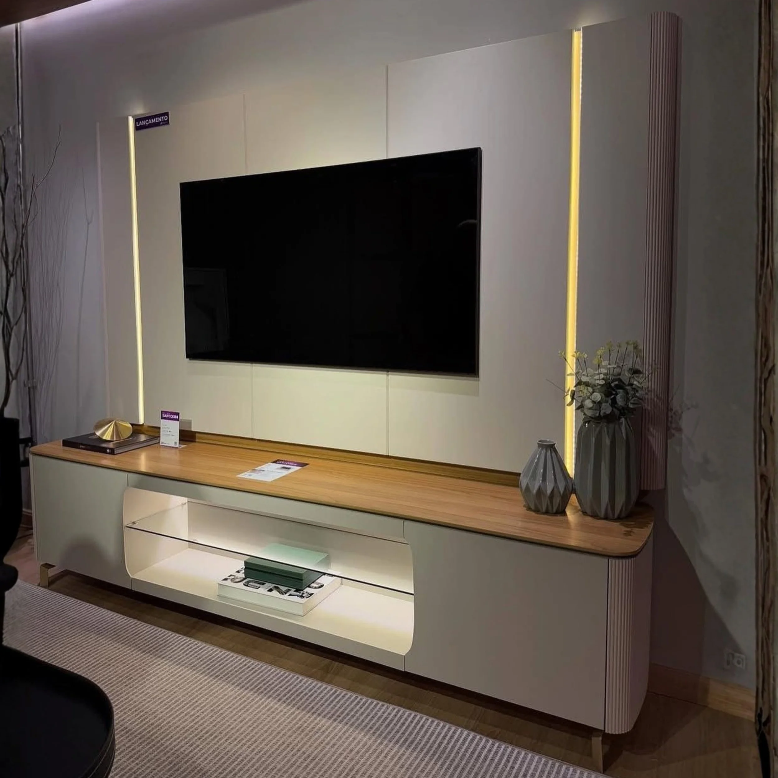 Painel + Rack Santorini Off White/Tauari Fosco – LINEA BRASIL