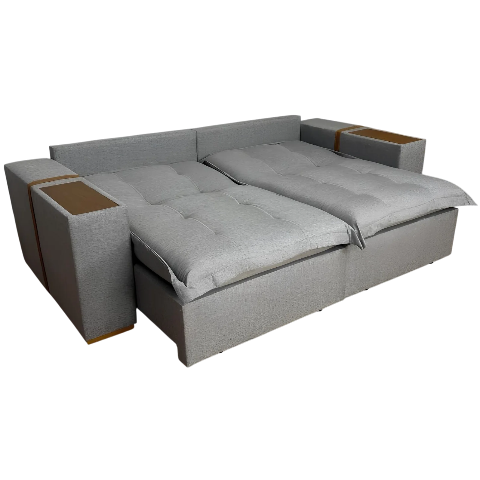 Sofá Cama Thebas/Gabriela 2,30 m Linho Grafite 301/Courino Dalas – ZARAT ESTOFADOS