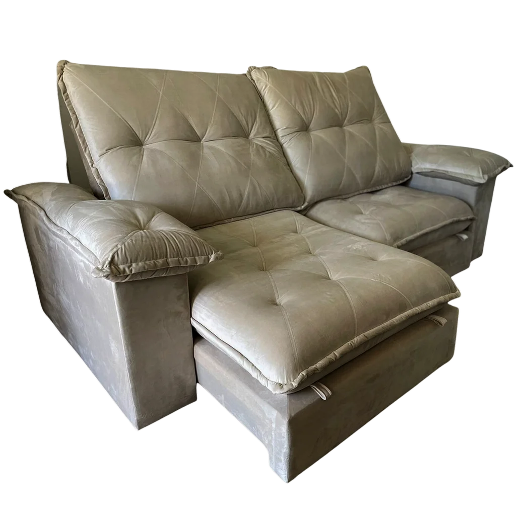 Sofá Retrátil e Reclinável Corvette 2,50 m Veludo Avelã – D’VITRINE ESTOFADOS