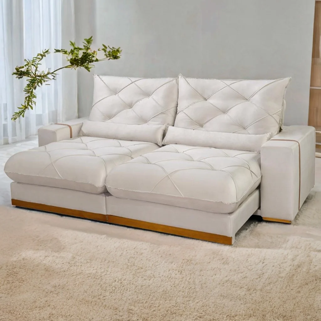 Sofá Retrátil e Reclinável Gran Paladium 2,50 m Veludo Bege – IMPÉRIO DECOR