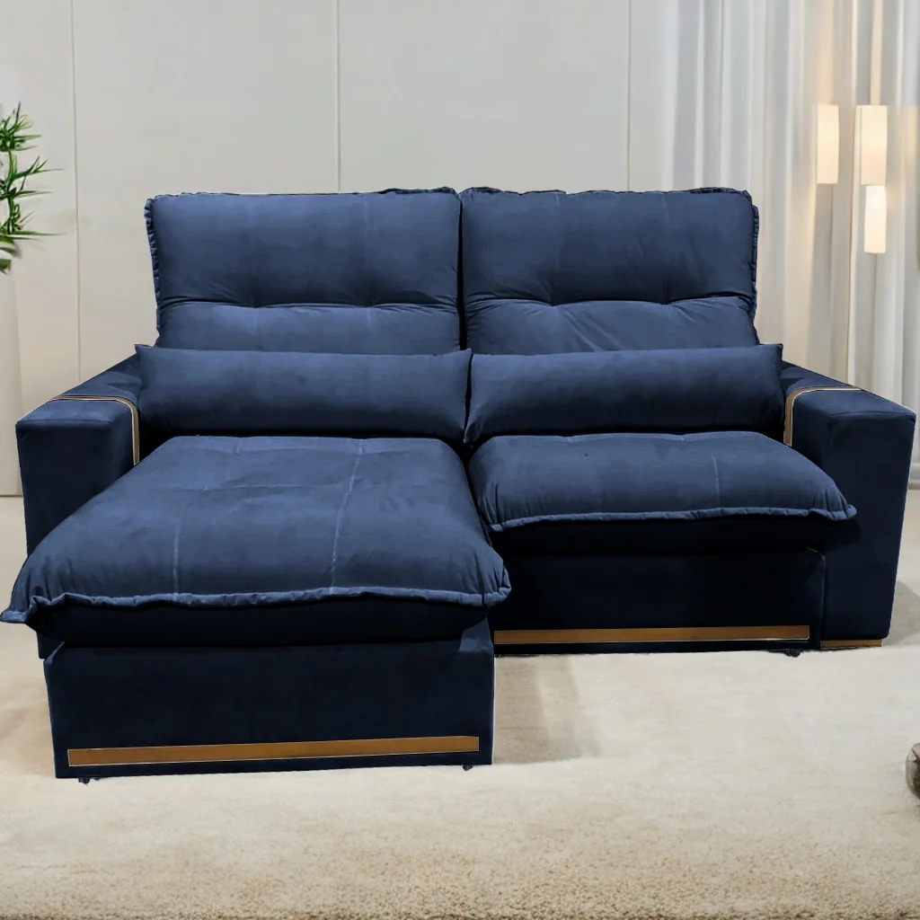 Sofá Retrátil e Reclinável Hórus 2,00 m Veludo Azul 104 – ZARAT ESTOFADOS