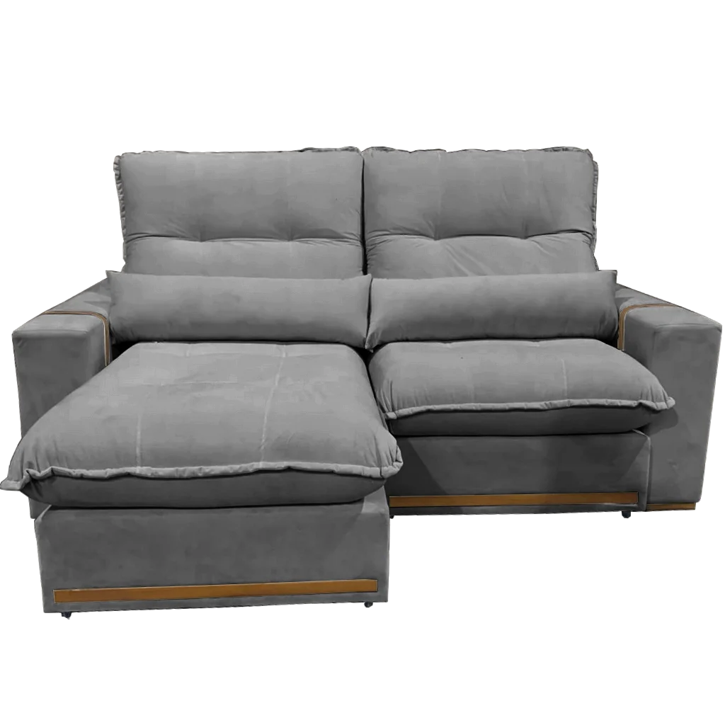 Sofá Retrátil e Reclinável Hórus 2,00 m Veludo Cinza 101 – ZARAT ESTOFADOS