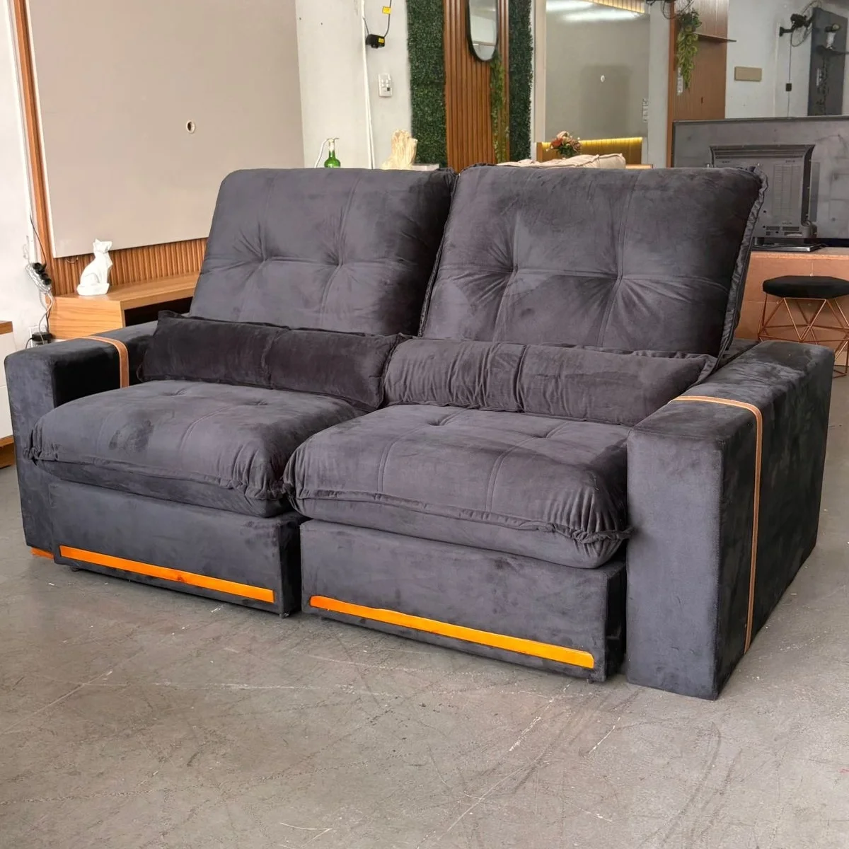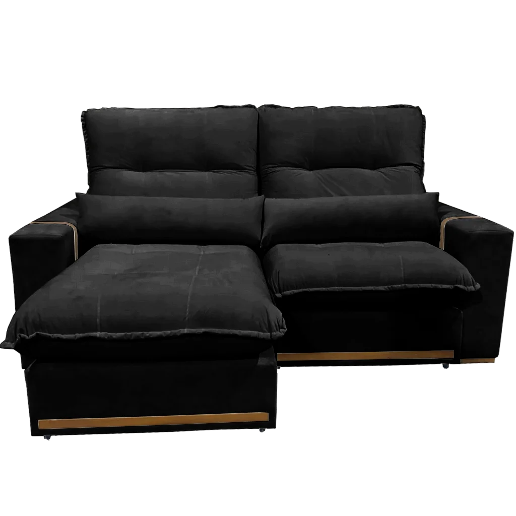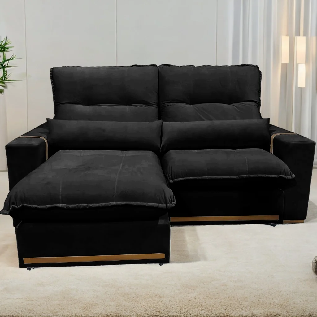 Sofá Retrátil e Reclinável Hórus 2,00 m Veludo Preto 111 – ZARAT ESTOFADOS