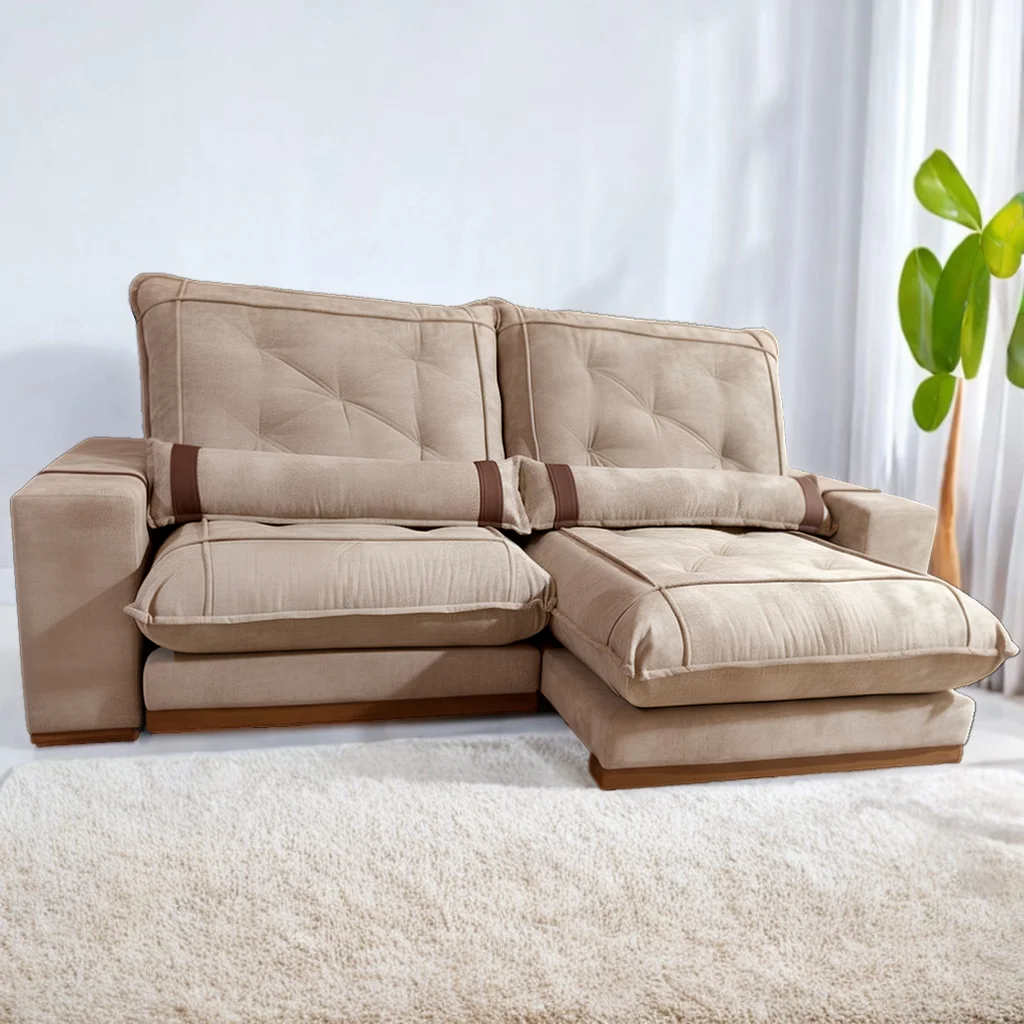 Sofá Retrátil e Reclinável Ibiza/Poseidon 2,50 m Veludo Bege 106 – ZARAT ESTOFADOS