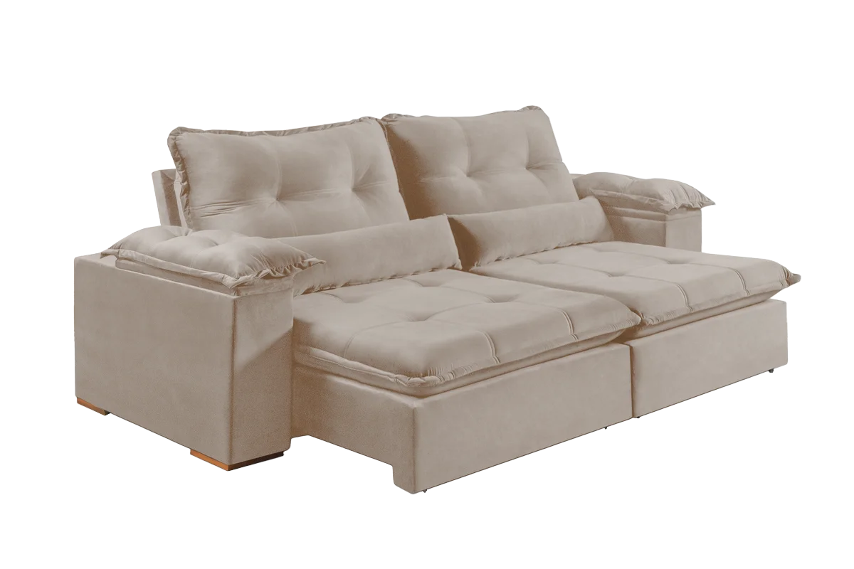 Sofá Retrátil e Reclinável Marrocos 2,50 m Veludo Marfim 5006 – VICAM ESTOFADOS