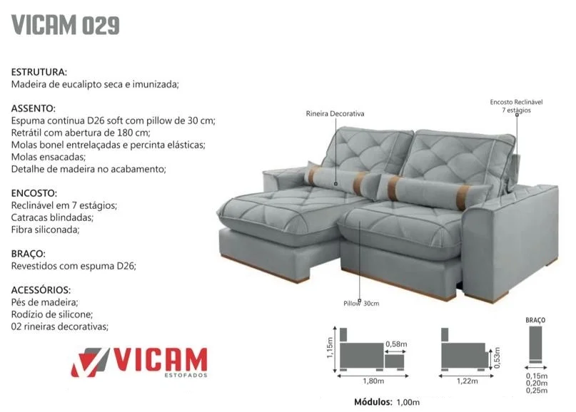Sofá Retrátil e Reclinável Poseidon 029 2,50 m Veludo Preto – VICAM ESTOFADOS