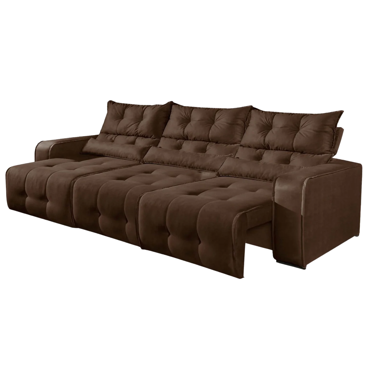 Sofá Retrátil e Reclinável Premier 2,50 m Veludo Marrom – DECORAR ESTOFADOS