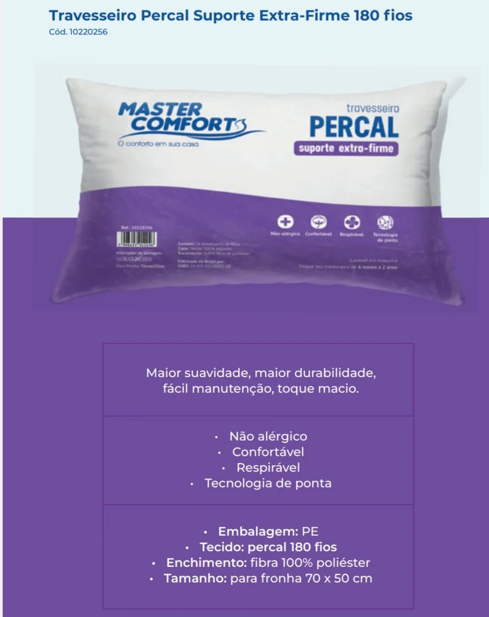 Travesseiro Fibra Percal Suporte Extra Firme – PILLOWTEX COLCHÕES